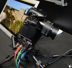 そんなDMC-GH4に拡張インターフェイスユニット「AG-YAGHG」を装着したモデルも存在しており、CP+2014 においてもデモが行われていました。