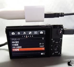 DSC-RX100M3は、どうかと言うと、同梱されているUSB ACアダプター「AC-UB10C」(5V/0.5A)を使用した場合は、USB給電が出来ません。