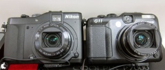 COOLPIX P7000とPowerShot G11を並べてみると、COOLPIX P7000の方が大きいことがわかります。