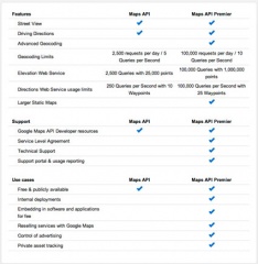 2,500リクエスト/1日までは無料で利用でき、超える分に関しては利用料金を支払う「Google MAP API」を利用するか、100,000リクエスト/1日まで利用でき、アプリケーションの埋込利用、広告の表示などが利用出来るなど豊富なサービス利用が可能な、年額1万ドルから契約出来る「Google Maps API Premier」の2種類を提供するそうです。