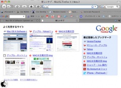 このツールバーは、Firefox 3.1 betaに対応していて、Google Chromeに採用されている、新規タブ表示時に、履歴情報から、アクセスが多いサイトを最大9個サムネイル表示してくれるようになっています。
