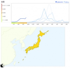 2009年10月09日(金) etc / インターネット#Google#インフルエンザ流行規模検索 Google、インフルエンザ流行規模検索が、日本語を含めた16ヶ国語対応に ※本サイトは、アフィリエイト広告および広告による収益を得て運営しています。購入により売上の一部が本サイトに還元されることがあります。 Googleが、インフルエンザの流行規模検索に関して、日本語を含めた16ヶ国語対応にしたと発表しています。 インフルエンザに関する特定のキーワードの流行を追跡することで、インフルエンザが流行している地域や規模をリアルタイムに推定することが出来ます。
