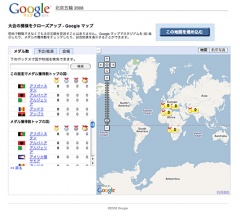 また、Google Mapsに、開催期間中、各国のメダル獲得数を表示する期間限定機能「北京五輪 2008」したと発表しています。