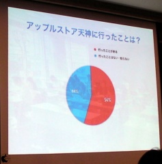 ただ、Apple Store, Fukuoka Tenjinに行ったことがある人は56%と多く、Macintoshには関心があっても、iPodへの関心が低いという状況のようです。