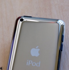 背面を見てみると、iPod touch (4th generation)には、WiFiアンテナ用の黒いパーツは無く(ボリュームボタンパーツ内に隠されている)、変わりにカメラが有ります。
