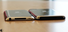 iPod touch (4th generation)を、同じ底面が平らな、初代iPod touchと比べてみると、かなり幅が小さくなっていることが確認出来ます。
