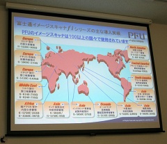 PFUは、今年創業50周年を迎えるそうで、PFUのイメージスキャナは、業務用も含めて、世界各国でシェアナンバー1だと説明していました。