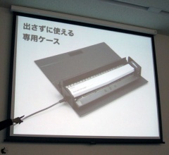 付属のUSBケーブルに巻取ベロクロスが付いていたり、別売の「ScanSnap S1100ソフトケース」が良く出来ていると説明していました。