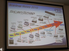 ScanSnapは、2001年7月に発売開始した「fi-4110EOX」から10年目を迎え、10万台を突破しそうだと話してました。