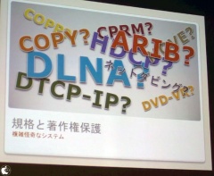 CPRM、DTCP-IP、DLNA、DVD-VRといった規格とはどんな仕様なのか、とても理解しやすい説明を行っていました。