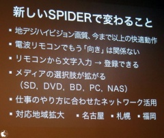 地デジ版SPIDER PROは、UIを一新し、インタラクティブなデザインに変わると実デモを交えながら説明を行っていました。(動画で実際の動いている状態が見られます)