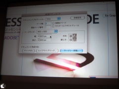 なお、iPad用アプリで、縦表示、横表示を行うために、縦表示画面と横表示画面用の制作を別々のファイルで行う必要があるが、正式出荷版では、一つのドキュメントの中で、縦横表示それぞれの制作が行えるようになると思うとコメントしていました。