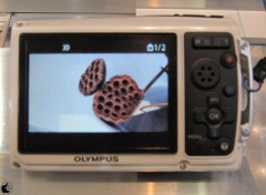 水深3mまでの水中撮影ができ、衝撃にも強いデジタルカメラ「Tough TG-310」の展示も行われていました。