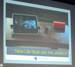 JawboneのBluetoothヘッドセット「ICON」や、Bluetoothワイヤレススピーカー「JAMBOX」などを紹介していました。