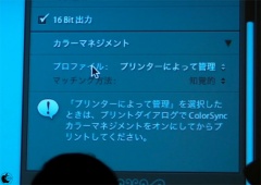 最後に印刷を行う場合の注意点として、Adobe Photoshop CS5.1 日本語版からプリントを行う場合の注意点として「カラー処理の2度がけをしない」という事だと説明していました。
