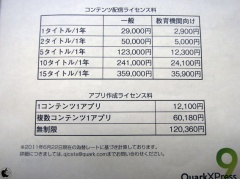 また、クォークのiPadアプリライセンスには、アプリの販売価格に対するロイヤリティが無く、また、ダウンロード数制限もないので、最初にかかるライセンス料以上に料金が発生することはないそうです。