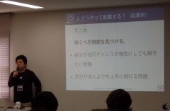柴田氏は、起業する意味として重要なのは「自分が困っていることを探しなさい。それを自分のテクノロジーで解決しなさい。そうしたら、それが会社になる。」ということを学んだと述べ、Googleは、Yahoo!の検索エンジンがおかしいと思ったから始め、Facebookは大学の学生名簿が紙で不便だと思ったから始めたことなど、その問題を解決する何かを提供するというのが重要だと語っていました。