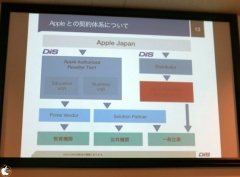 ダイワボウ情報システムと契約し、Appleに申請し確認書に捺印することで、教育機関向けにApple製品を販売するプライムベンダー、公共機関あるいは一般企業向けにApple製品を販売するソリューションパートナーとして、Apple製品を扱えるようになるとのことです。