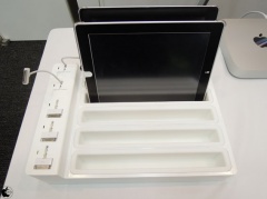 なお、アメリカでは、XtremeMacのiPhone/iPadが5台まで充電出来る「InCharge X5 Docking Station」や、BretfordのiPadが10台まで充電出来る「Bretford PowerSync Tray for iPad」などが販売されています。
