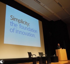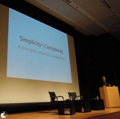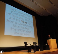 Appleは人間が持っている欲求に働きかけたいと思っていて、シンプルと複雑さは表裏一体で、その複雑な部分の一部がシンプルだと話し、1980年にSteve Jobs氏によるAppleという名前を選んだ理由について述べていて、シンプリシティを追求することに決めたからだと語っていることからも分かるように、製品だけでなく全てに渡ってシンプルであることを求めたと話しました。