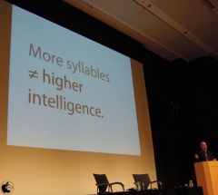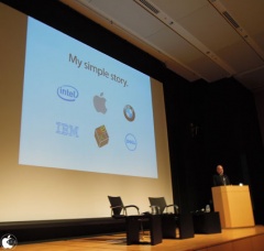 Ken Segall氏は、以前日本に来たのは、MACWORLD Expo Tokyoだったが、それ以来の日本来日となると話し、今回、Appleがいかにシンプルかに拘って成功してきたかということが分かると説明しました。
