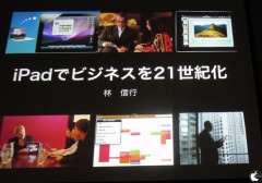 iPadは、これまでのパソコンとは異なり、情報の主役であるスクリーンがあるだけの極めてシンプルなデザインなのにも関わらず、この新しい形状が、これまであまりIT化されていなかった領域も含め、さまざまな人に新しい21世紀のコンピューティングのインスピレーションを与えていると話し、その強さの理由について、多くの事例とリサーチデータを元に説明していました。