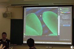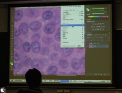 顕微鏡写真を使い、特殊なカメラで撮影した写真データーをどのように補正するかなどについて、デモを交えながら紹介していました。