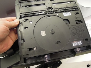 上段トレイを抜き出し、裏側を見ると、BD/DVD/CDレーベルプリントのガイドが収納されています。