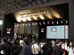 アドビ システムズが発表したAdobe Creative Suite 4 日本語版のうち「Adobe Creative Suite 4 Production Premium」のローンチを兼ねているため、初日の朝一から、メインステージのデモは、ブースを溢れるほどの人だかりができていました。