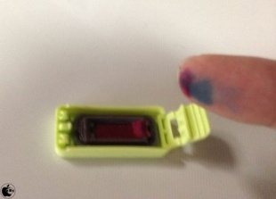インクカートリッジは蓋を外してから本体に装填しますが、この時、指にインクがつかないように注意!
