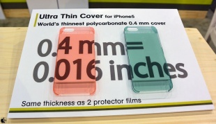 2013年01月09日(水) etc / レポート#CES2013#トリニティ#iPhone_5 CES2013:トリニティ、濁りのない透明のケースとしては世界最薄のiPhone 5ケースを参考出品 ※本サイトは、アフィリエイト広告および広告による収益を得て運営しています。購入により売上の一部が本サイトに還元されることがあります。 CES2013において、トリニティが、濁りのない透明のケースとしては世界最薄のiPhone 5ケースを参考出品していました。 その厚さは 0.4mm と、ディスプレイ保護シートを2枚重ねた程度。 この0.4mm を証明する為にブースにはデジタルノギスも用意されて測る事が可能になっていますが、本当に 0.4mm しか有りません。 現在製造の最終工程に入っており、数ヶ月以内に正式発表と出荷開始が行なわれる予定となっています。