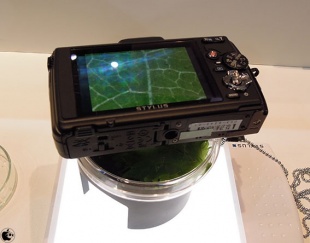 撮影距離1cmで7〜14倍相当(35mm換算)の撮影が可能な「スーパーマクロモード」が搭載されていて、顕微鏡のように拡大して撮影が出来ることを体感出来るデモ展示が行われていました。