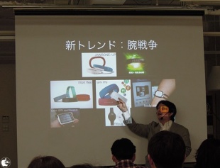 新しいトレンドとして「腕戦争」と名付け、腕に付けて様々な情報を取得するデバイスが多く展示されていたと話していました。