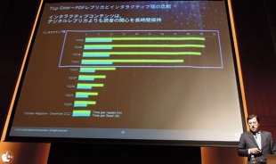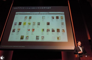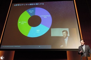 App Storeにおける電子書籍の中で、メジャー雑誌の多くがADPSを採用していて、アメリカだけでなく、ヨーロッパでも主要雑誌の多くで採用されていると話しました。