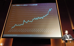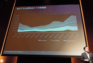 ADPSで配信される週当たりの出版物数を20111年3月31日から2013年2月28日まで1ヶ月単位でグラフにした資料を示し、この2年間で180万という数字を記録し、成長が著しいことをアピールしていました。