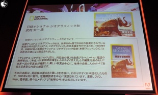 ナショナル ジオグラフィックは、カメラの進化ともとに成長してきた雑誌ともいえ、最近では写真だけでなく、動画撮影することが多くなり、そうした動画を含める事は紙面では難しいが、電子書籍では可能になると話していました。