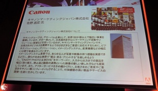 キヤノンマーケティングジャパン社の佐野昌宏氏は、iPhone/iPadアプリ「EF LENS HANDBOOK」をADPSで制作したそうで、これは、元々同社が販売するEFレンズを初心者でも分かりやすく選んでもらうことを目的に作られていて、紙のカタログでは、ページ数の関係上、全てのレンズの作例を載せることは難しいという事もあり、全てのレンズの作例を入れたアプリを開発することにしたそうです。