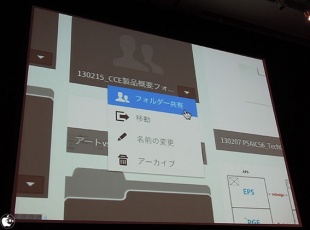 Creative Cloudの同期サービスに、ファイル同期だけでなくフォルダ同期が可能になると説明した。