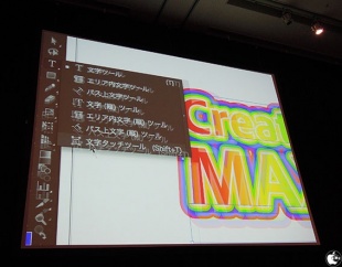 Adobe Illustrator CCに搭載されたエリアテキスト機能は、文字タッチツールを使用すると、テキスト上で個々の文字を選択し、移動や拡大・縮小、回転などの編集が行えると説明した。これは、縦書きでも利用可能だそうです。