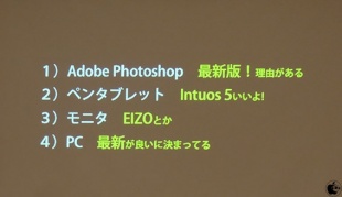 Adobe Photoshopを極めたいのであれば基礎をしっかり学ぶことが大切で、Adobe Photoshopはエンジンが進化し続けているので、最新版を使用することが良く、ワコムの「Intuos5」を使ってマウスを使用しなくなったそうです。
