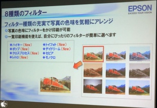 このフィルター機能は、様々なデジタルカメラで撮影された写真でも適切なフィルター効果が出るように、プリンターに内蔵されている自動補正「オートフォトファイン!EX」を利用しているそうです。