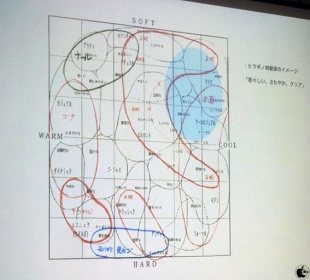 それらから、既存書体の分析を行い、イメージ把握、機能(本文用、見出し用、大見出し用など)、印刷物との相性、完成度などを決め「若々しい、さわやか、クリア」の部分にフォントが無い事が分かり、そこをヒラギノ書体のターゲットに決めたそうです。