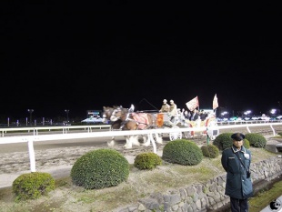 表彰式を行うため、馬車クルーズイベント「スタークルージング」で使用される馬車、ティーゲル氏と、ブログマフィアの方々が一緒に乗って大はしゃぎしてました。