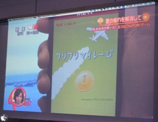 続けて、映画「ハングオーバー」のプロモーションや、深夜のアイドル番組「アイドルの穴!」でも使ってみたところ、こちらでもフリフリ体験は非常に好評。このために、フリフリ機能だけを切り出して、シンプルに特化させたアプリ「フリフリTV」をリリースする事になったという事でした。