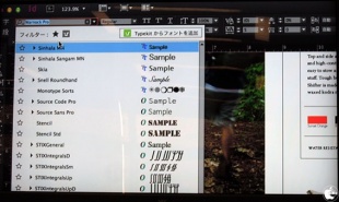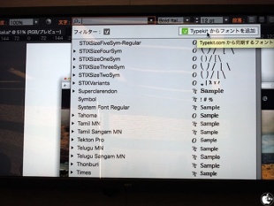 Typekit連携が強化され、お気に入りフォント選択や、フィルター検索などが出来るようになっており、Typekitを使用したInDesign CCファイルを受け渡しした場合、不足しているTypekitフォントが同期されると説明した。