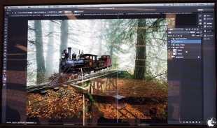 例として、線路だけが写った写真に、機関車が線路に乗ったように写真合成が行えるとデモ紹介した。