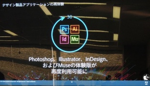なお、Adobe Creative Cloudにおける、Adobe Photoshop CC、Adobe Illustrator CC、Adobe InDesign CC、Adobe Muse CC再体験利用が可能になっていると紹介した。