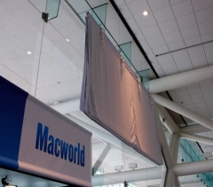 MACWORLD Expo 2009の前日は、例年通り、新製品と思われるバナーが巻き上げられた状態で Moscone Center内の各所に設置されています。