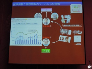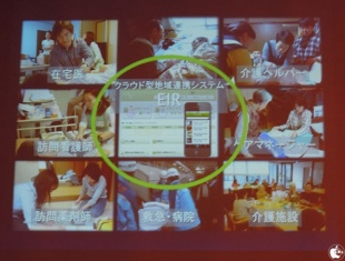 また医師の業務時間も短縮化することが可能になり、診療訪問時間が50%アップしたと説明した。また、iPhone・スマートフォンで地域医療・介護を繋ぐ地域医療連携支援システム「EIR」が実践導入おいてうまく稼働するようになってきたと説明した。