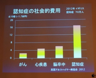 今後は認知症の社会的費用の負担額は増大傾向にあり、政府は地域包括支援システムを打ち出していると説明した。在宅医療において24時間体制を構築する必要があり、これがスマートフォントクラウドサービスによって実現することが可能になったと説明した。